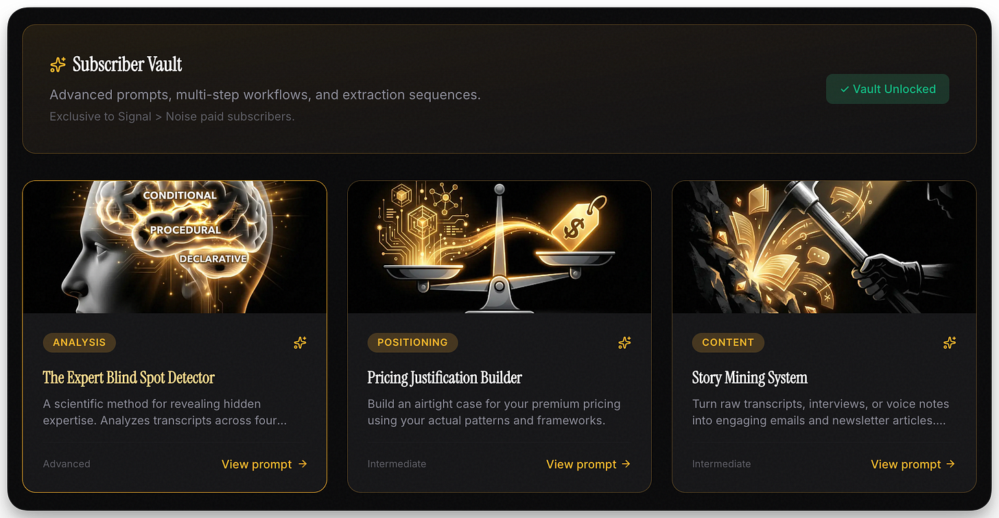 Each issue breaks down the patterns hiding in your expertise. The stuff you do without thinking that’s actually worth the most.