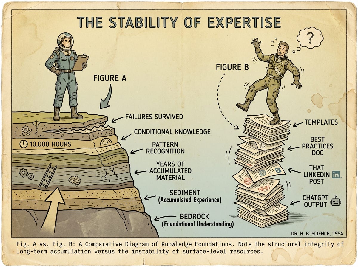 What it cannot give you are the 50,000 to 100,000 domain-specific chunks that experts have accumulated over years. Patterns compressed into instant recognition that fire before conscious thought even kicks in.