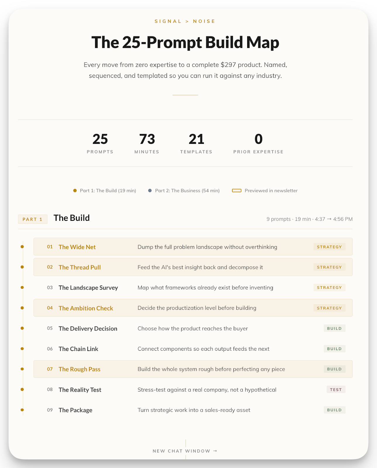 Two parts. Two chat windows. Nineteen minutes to build a complete consulting product. Thirty-nine more to turn it into a $297 business.