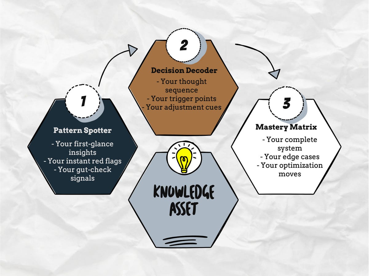 She called it her "Visual Velocity Scanner"—a step-by-step breakdown of what her eyes notice and why. These split-second assessments might look like intuition, but they’re actually compressed expertise. By breaking them down into clear, teachable steps, she transformed her invisible wisdom into tangible value.
