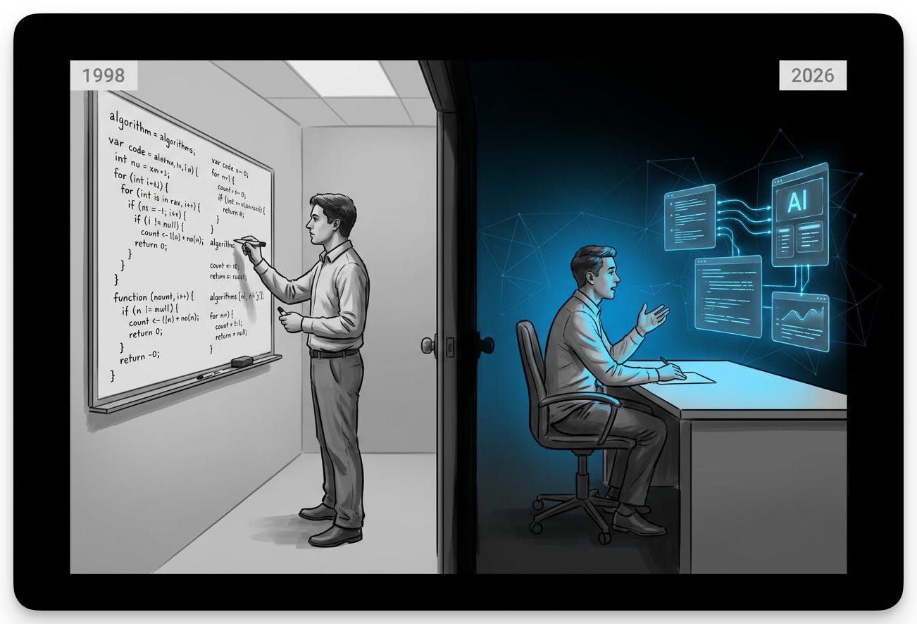 Every one of those interview formats was a bet about what the company actually needed from a new hire... encoded as a test you could either pass or fail in a small room with the door closed.